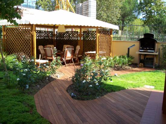 Struttura in abete lamellare con pilastri e travi dimensionati secondo calcoli strutturali . Copertura con telo in PVC di gr.650 al mq.